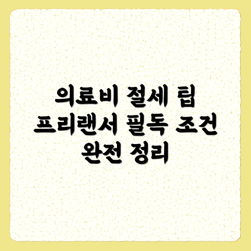Q: 프리랜서가 의료비를 공제받기 위해 구비해야 할 서류는 무엇인가요?A: 프리랜서는 의료비 공제를 받기 위해 병원이나 약국에서 발급받은 영수증, 진료비 세부내역서, 그리고 소득세 신고서가 필요합니다. 또한, 공제 신청 시 해당 비용이 의료 범위에 포함되는지 확인해야 합니다.